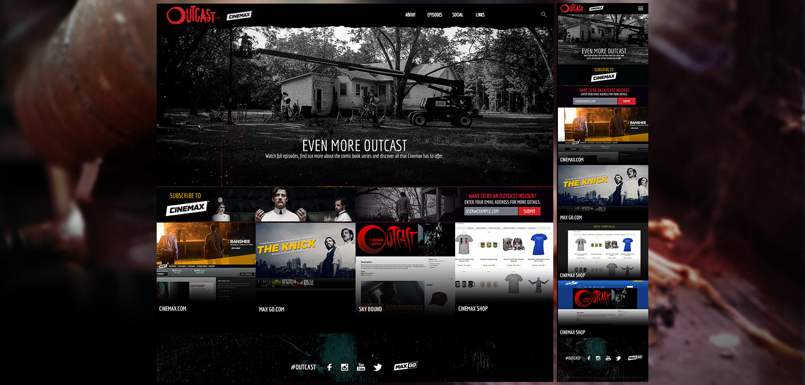 The site began as an early-release blog designed to bring fans awareness to the production of the series. On the premiere, the focus shifted to complement the show and increase fan engagement with exclusive, behind-the-scenes footage. Outcast marks the second original scripted series to score a second season ahead of its debut at Cinemax.